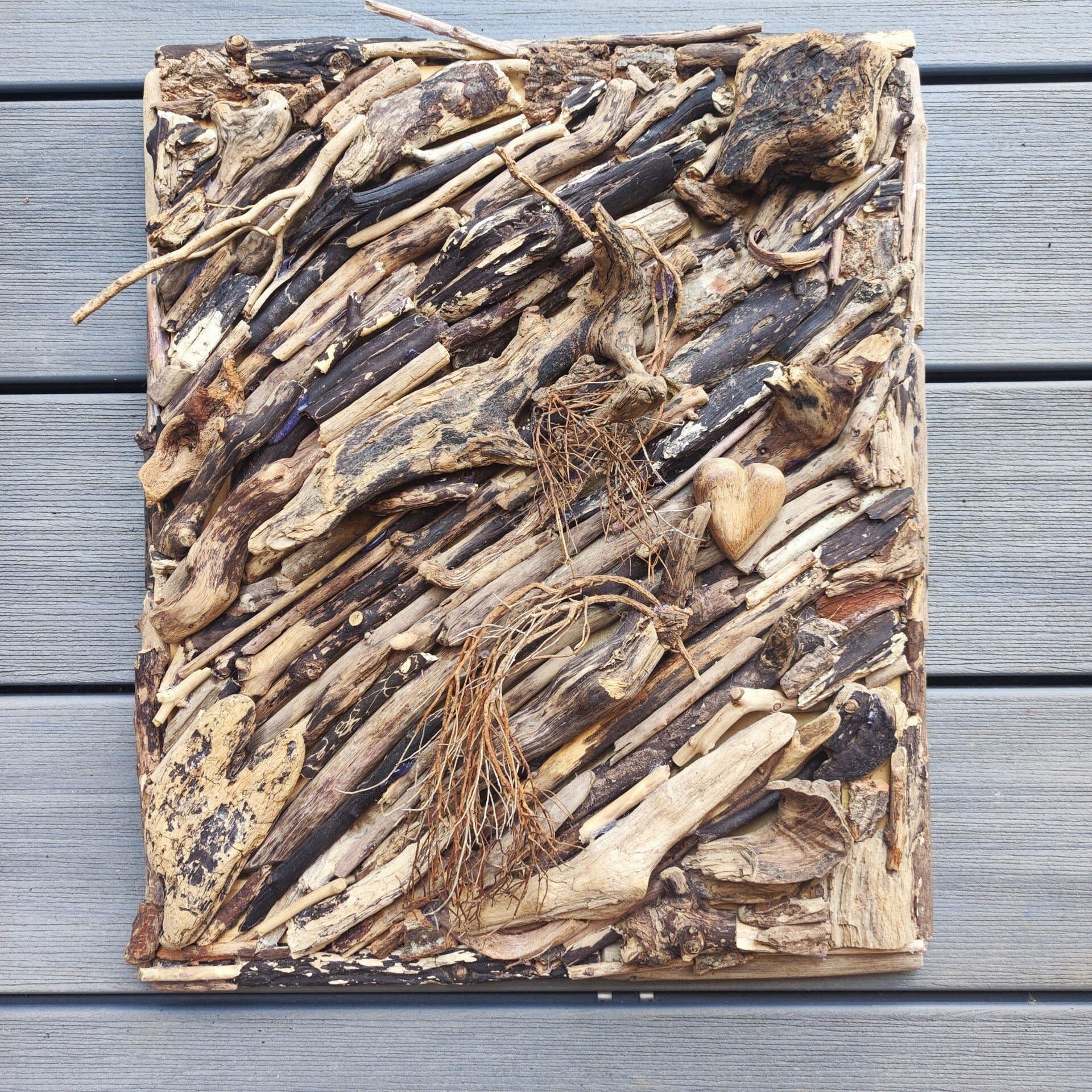 dieser Bild besteht aus diversen Schwemmhölzer und verschiedenen Herzen.