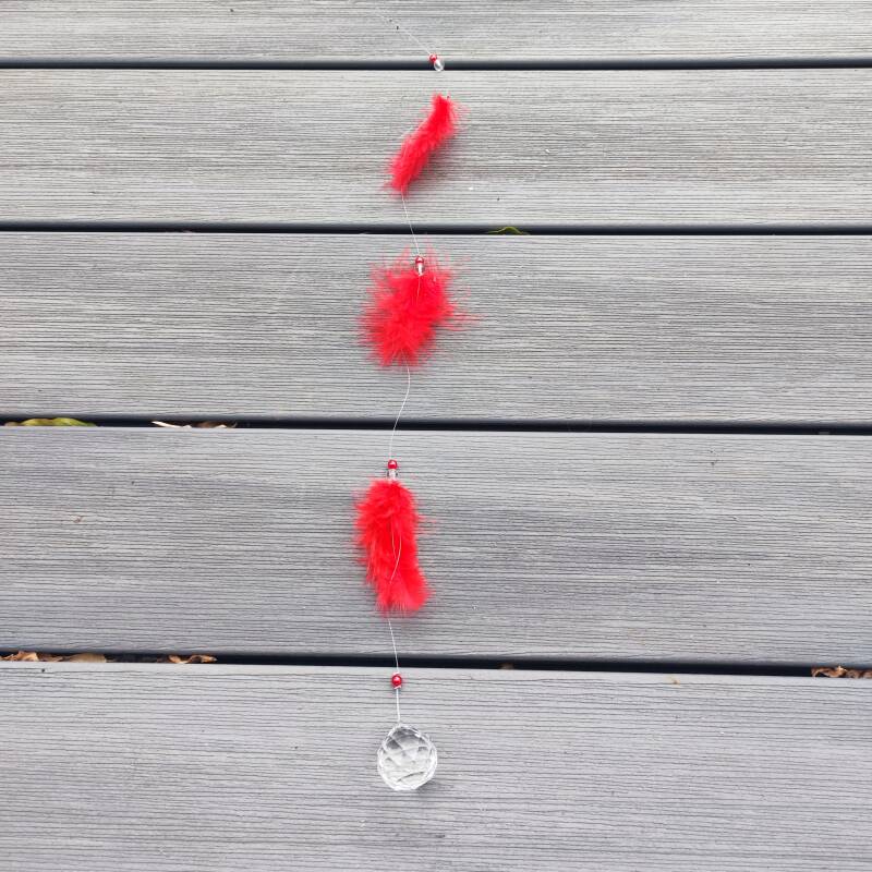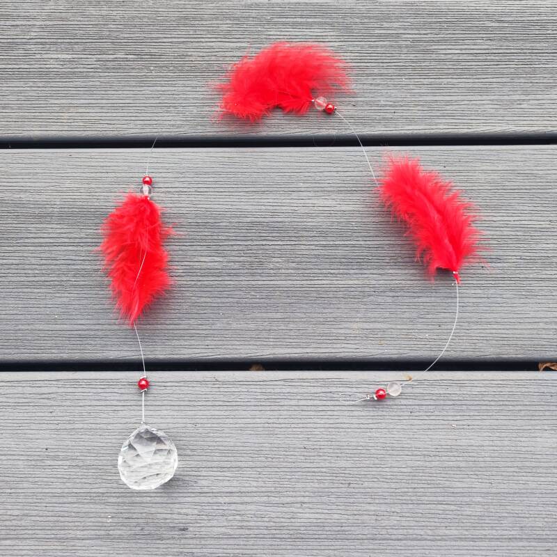 diese Girlande besteht aus weissen Federn und unten ist ein schöner Kristall angebracht.